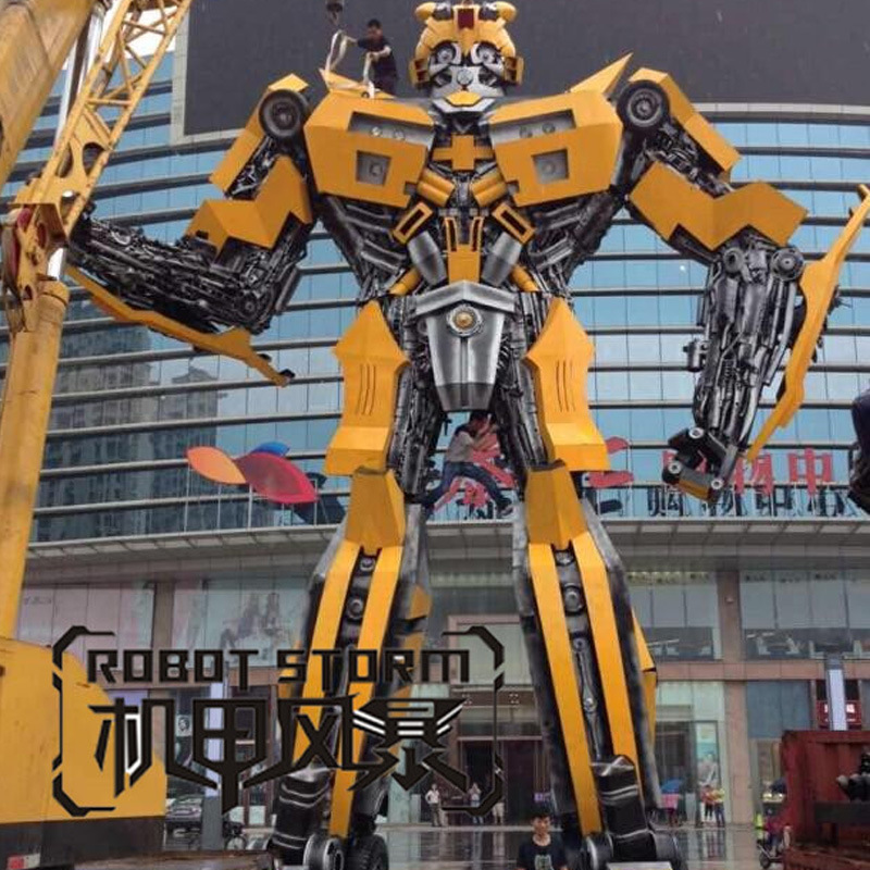 一代機甲戰士以家喻戶曉的變形金剛鋼雕為造型,采用環?;厥珍摬牡葹椴牧?,可實現身體七彩玄幻燈光效果,眼鏡會發光。