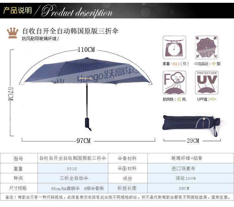 [品名]:韓版 強力拒水 三折折疊全自動傘