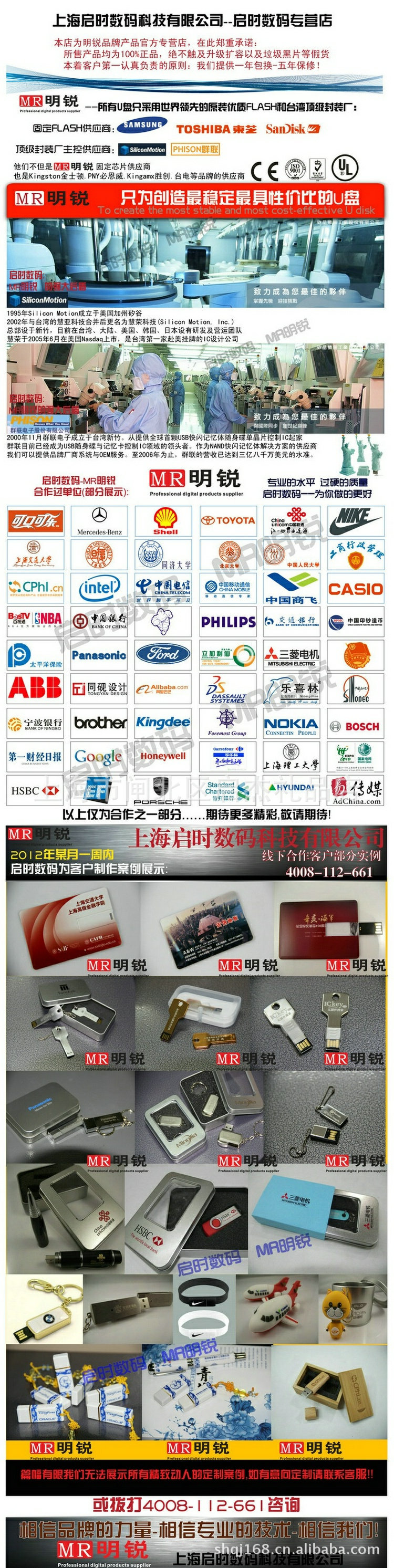 生產線及原材料皆由本人親自負責,本著誠信為本.合作互贏的原則,可以保證我司出品無一個U盤移動存儲是升級假貨!有一賠十,所有產品實行一年免費包換保修,實行三年售后服務!本地客戶更可驗貨后付款!外地客戶亦可支付寶交易!
