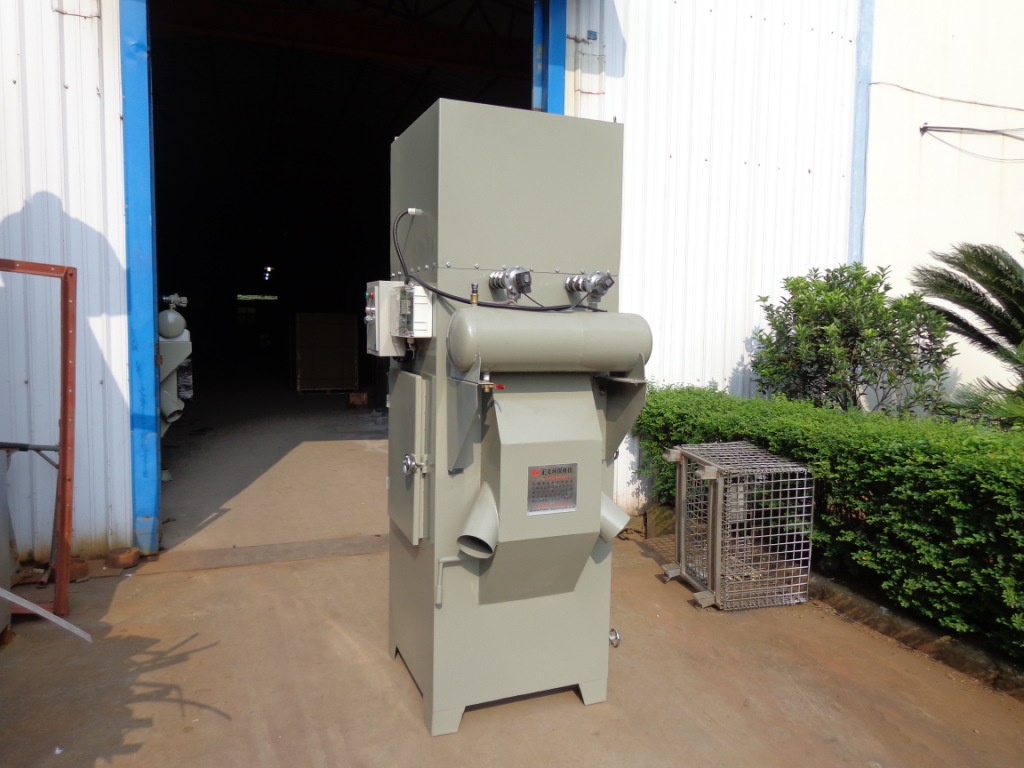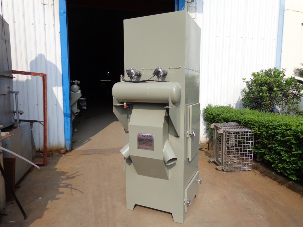 濾筒式除塵器,具有阻力小,過濾面積大,占地省等優點,將機組放置獨立的除塵間,配置連接軟管使吸塵罩與除塵器連接,接上電源,開啟風機,在風機的吸引下,塵源經吸塵罩~風管~進風口進入箱體預處理室,因氣流突然擴張,流速驟然降低,大顆粒粉塵在其自重的作用下再空氣中分離而沉降,其余塵粒由于濾筒的篩濾,碰撞,鉤掛,靜電等作用,被滯留于濾芯外壁,凈化后的空氣由風機經出口排出。本機組濾芯采用高效濾材,凈化后的空氣可直接排放室內循環使用,無通風熱量(冷量)損失。并采用在線的清灰方式,清灰過程中無需停機。采用脈沖清灰,用戶需自備氣源即可。