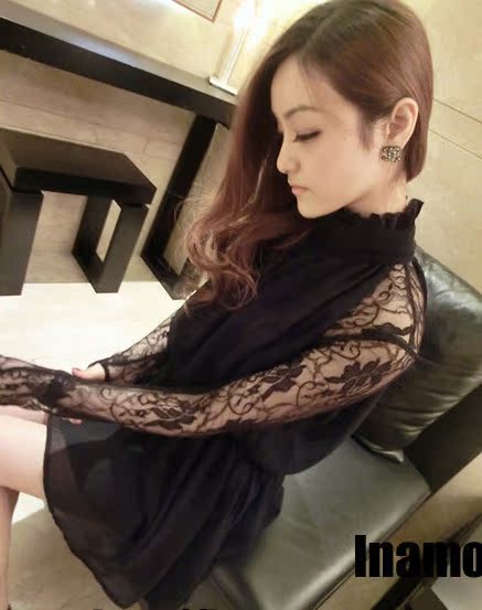 袖口由蕾絲拼接,蕾絲內伴有金絲勾織,讓你有一雙閃閃耀眼的迷人纖臂,性感又高貴,宮廷感的設計,女皇的感覺,讓你有種不可褻瀆的氣質