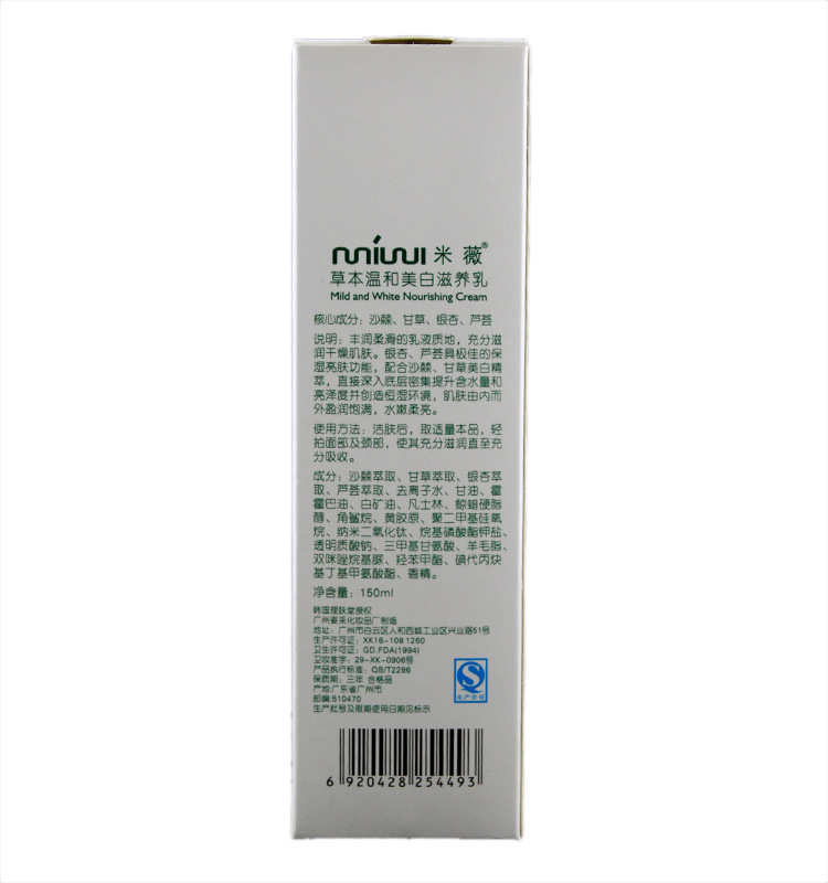 韓國品牌化妝品米薇草本溫和美白滋養乳 品牌乳液保濕乳液