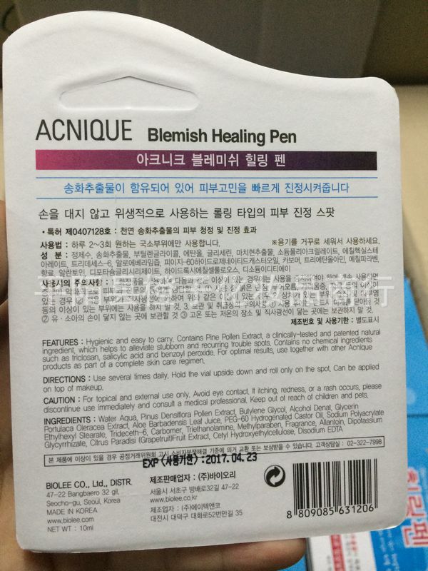 便于攜帶和使用的局部青春痘專用Pen,含有松黃提取物,具有護理青春痘和快速鎮定肌膚的功效。在粉刺或暗瘡上迅速消炎細菌,當您工作或睡覺時。 幫助清除倔強,復發的暗瘡。ACNIQUE採取自然植物萃取物,杉木花粉萃取物作為一個抗菌成份。其他公司共同地採取限於相當數量0.3% ~ 0.5%作為化妝用品, 成份的化合物例如 triclosan和柳酸,自然對待粉刺的用品。
