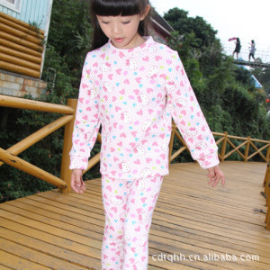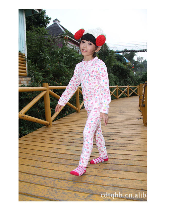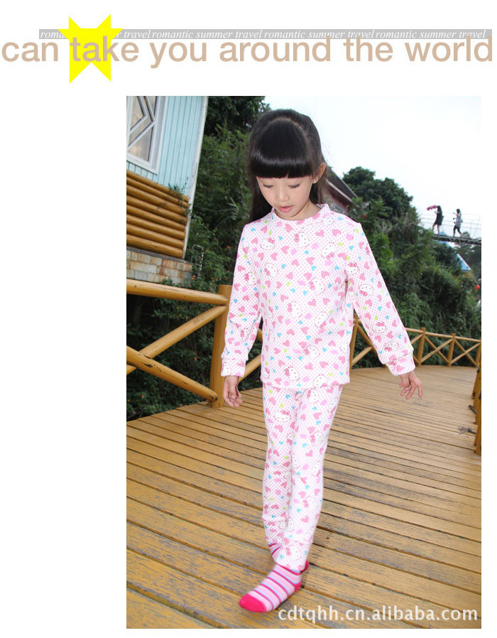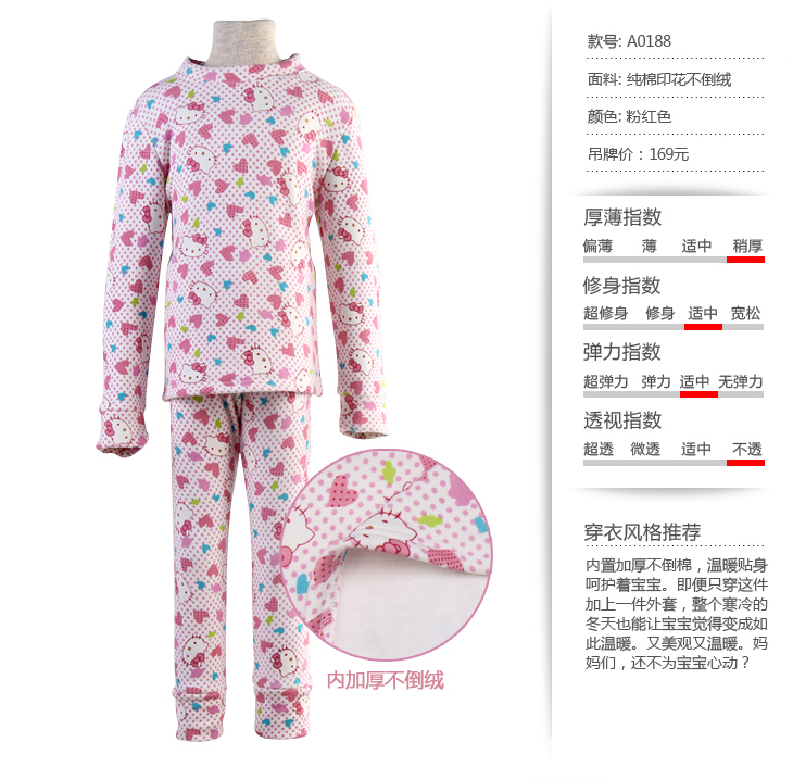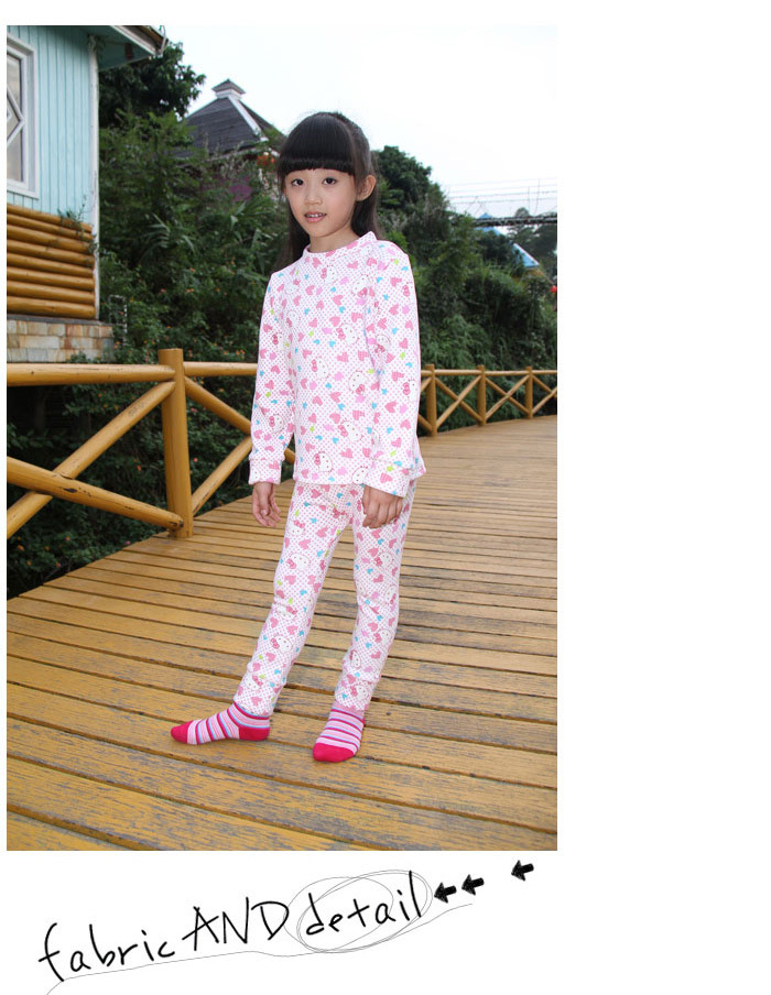 韓版童裝小貓印花女孩保暖純棉不倒絨內衣套裝(白色 加厚)