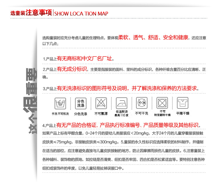 4,注意事項:首次穿著前先清洗一次;不可干洗;不可漂白;清水洗滌,水溫不能超過40攝氏度;緩和程序(洗衣機)清洗:蒸汽熨燙,溫度不超過110攝氏度;懸掛晾干。