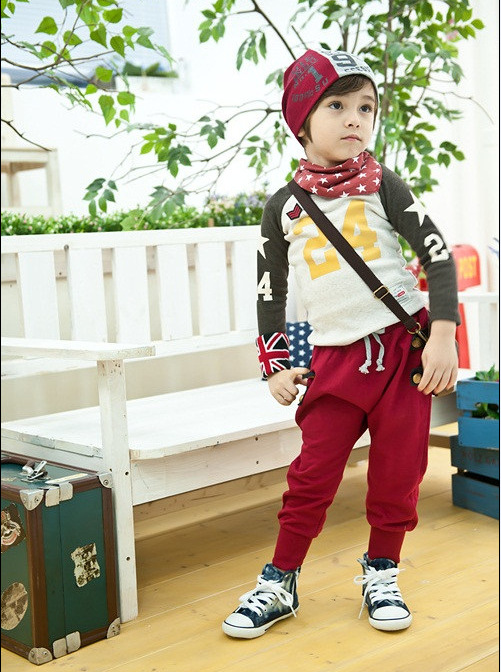 【韓版童褲批發】春褲K151 韓款2012春季童褲字母小星星休閑跨褲