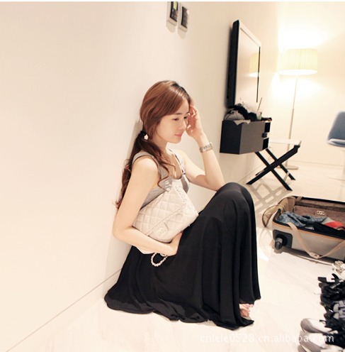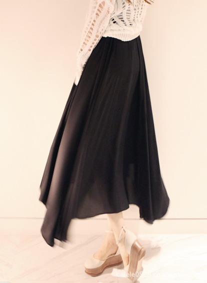 2012韓版雪紡半身長裙 半身長裙 寬邊松緊腰 加工銷售低價