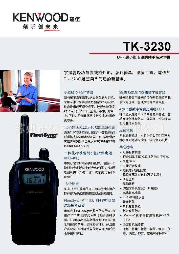 蘇州建伍對講機TK3230對講機及對講機電池
