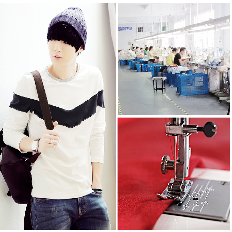 【淘工廠】服裝加工小批量定制男士中高檔長袖刺繡印花T恤