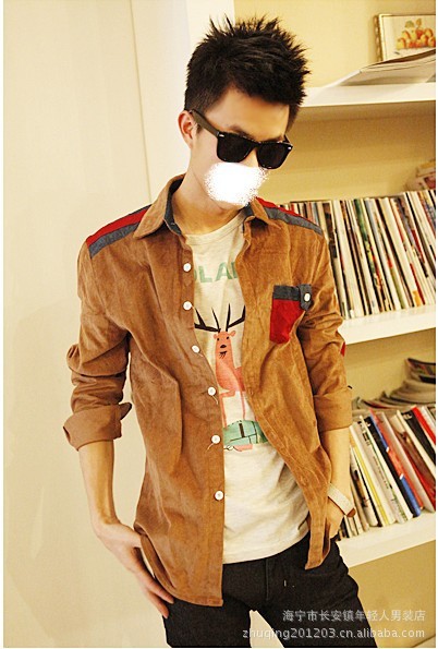 2012韓版春裝新款 燈芯絨面料韓版長袖襯衫 韓版男士修身襯衫