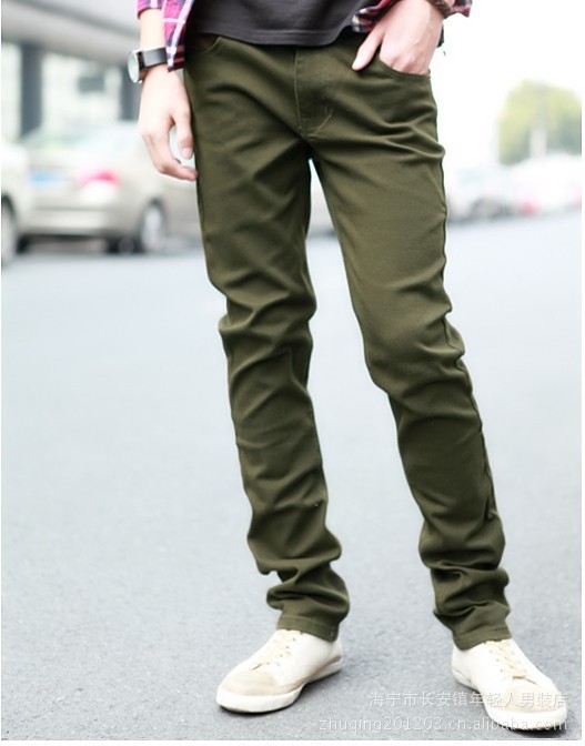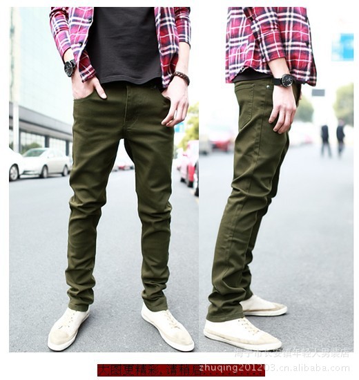 批發韓版 新款 修身型 男士個性休閑純色褲 修身休閑褲 帥氣軍綠