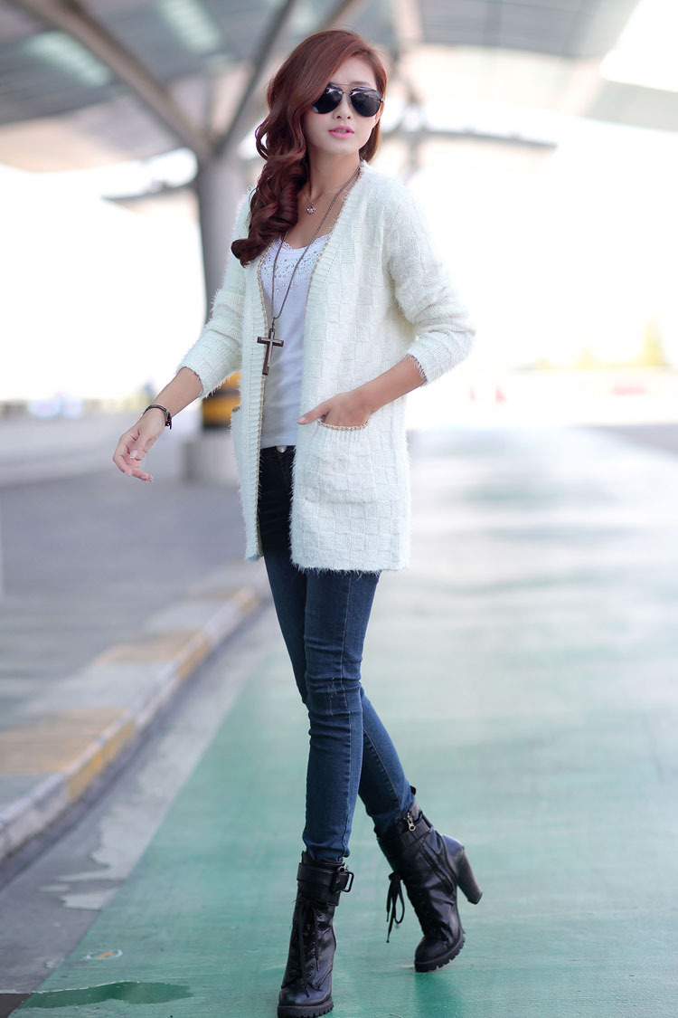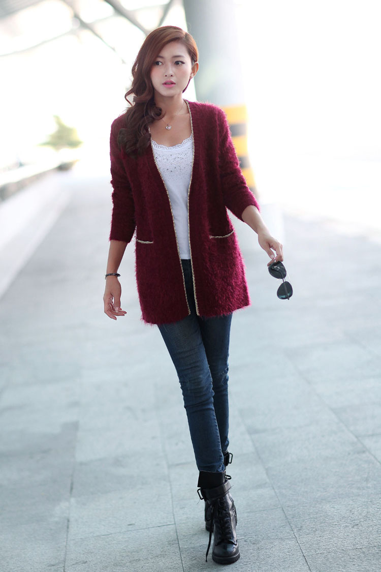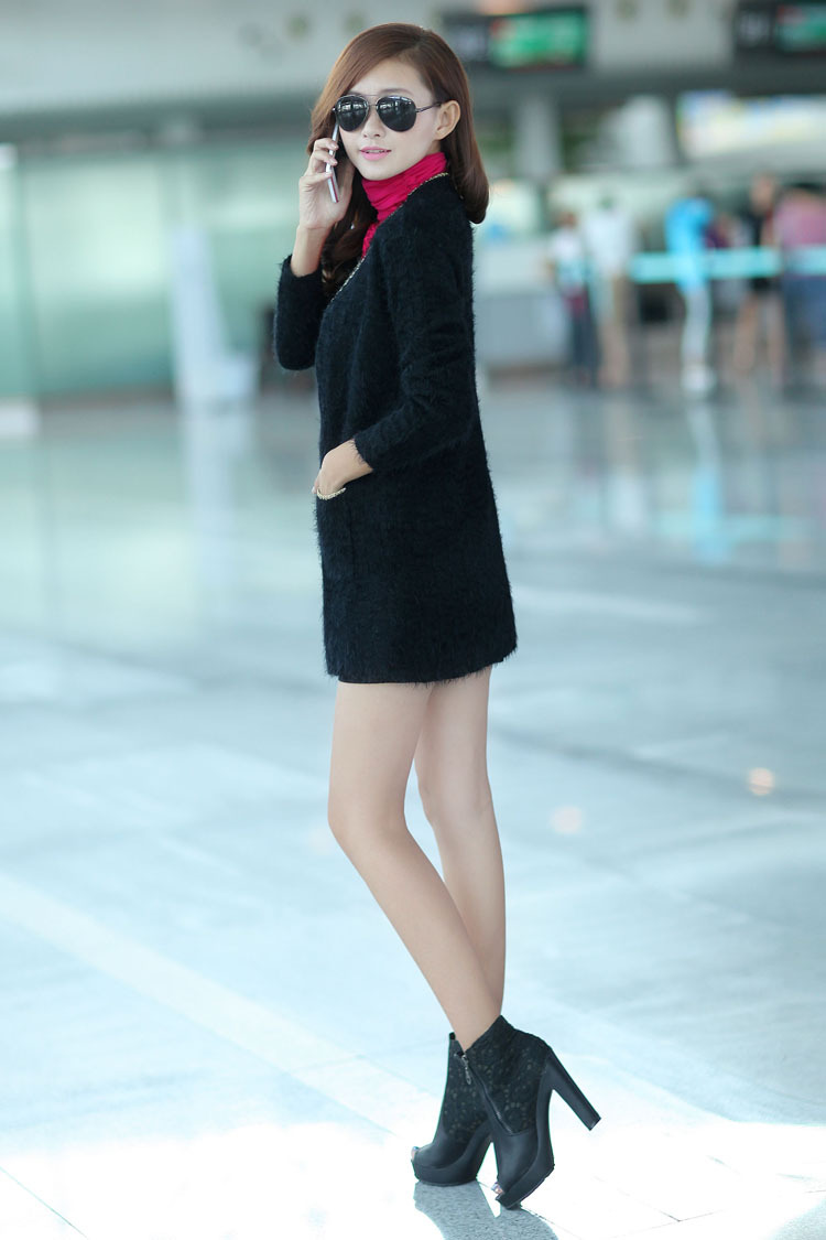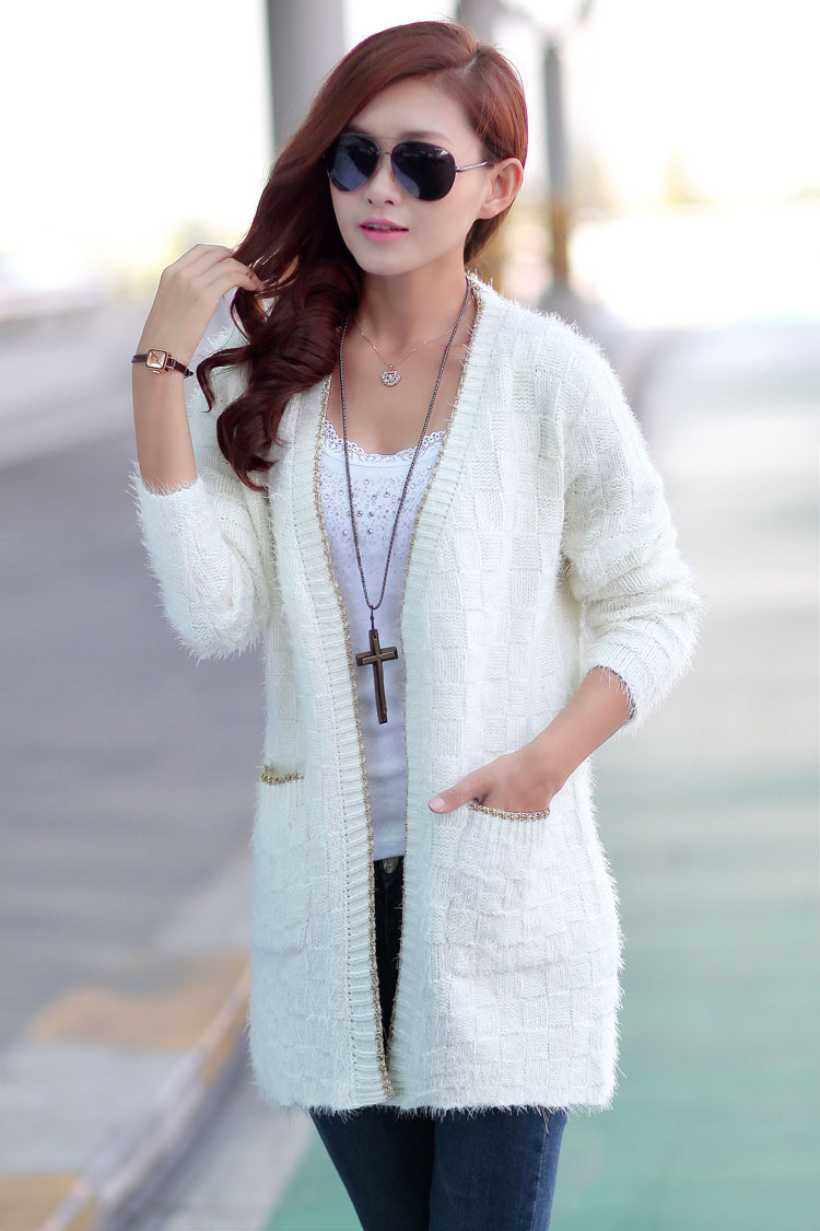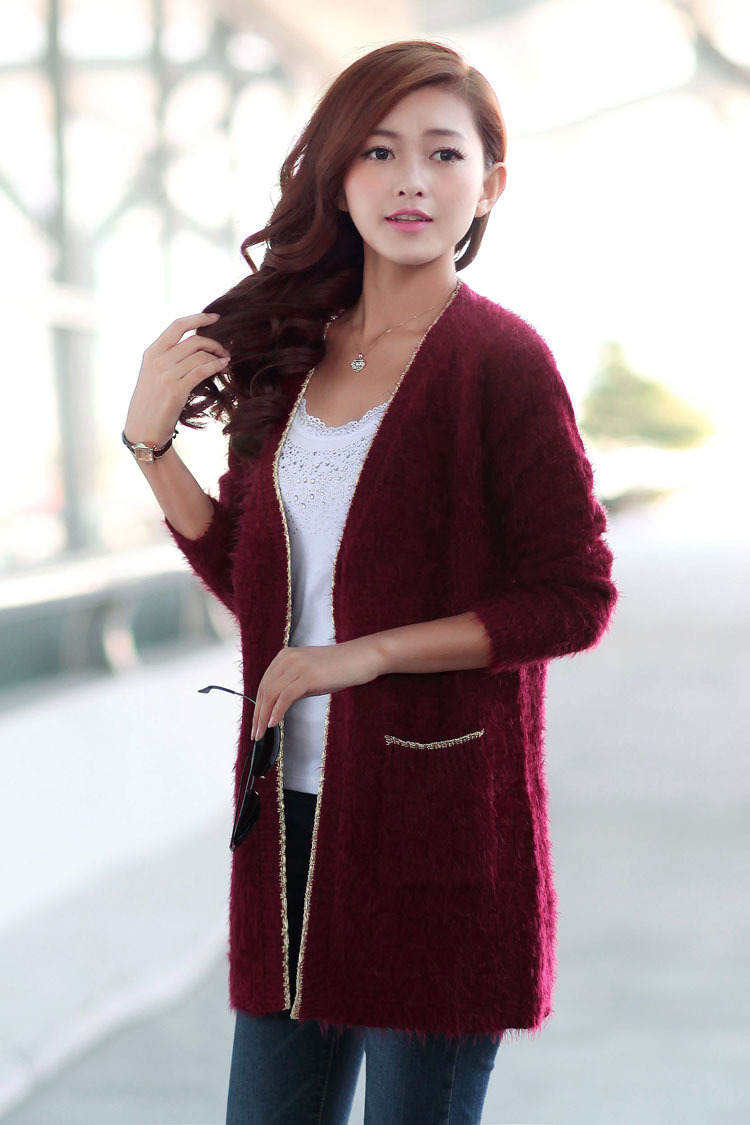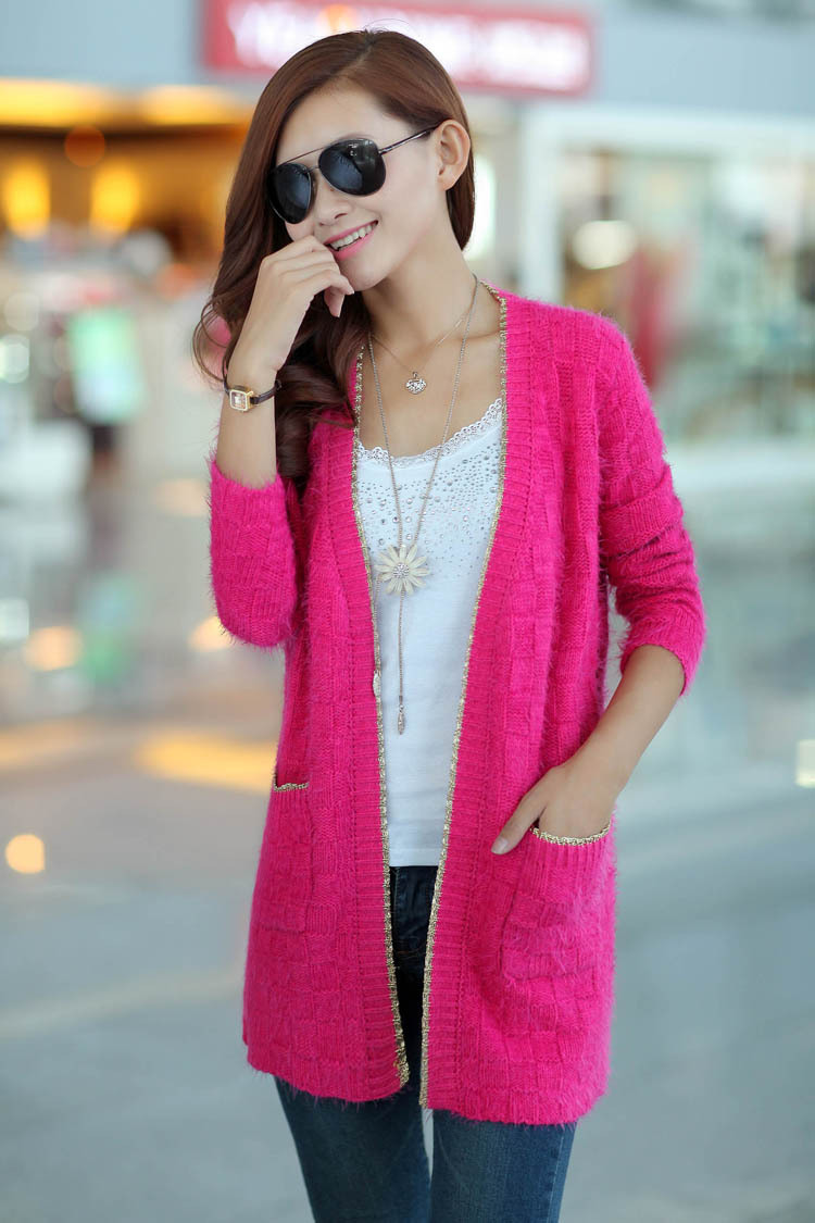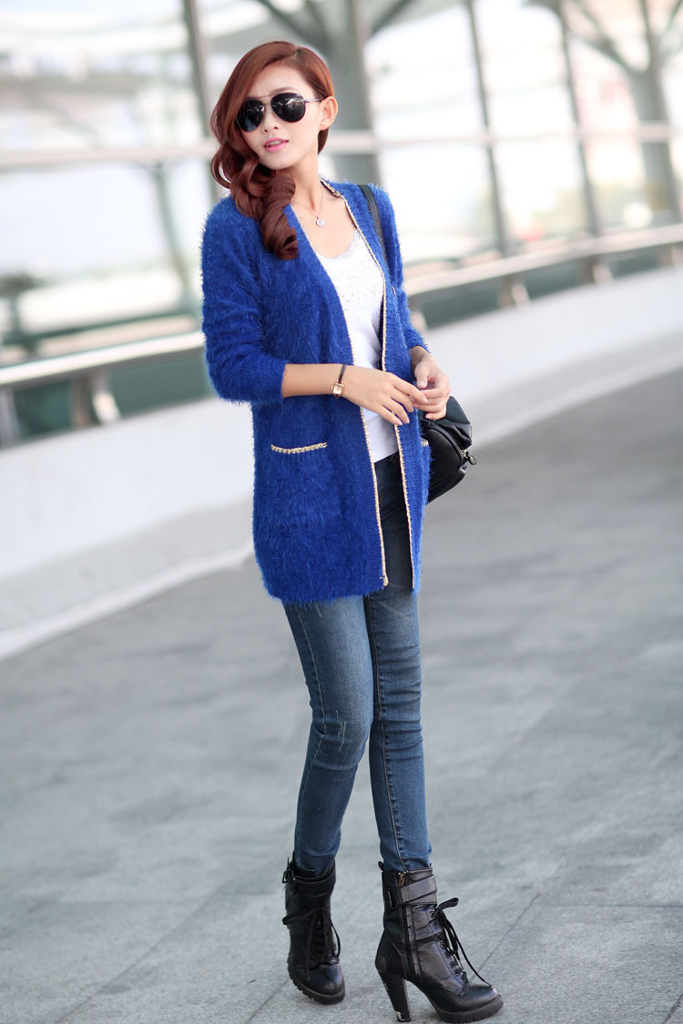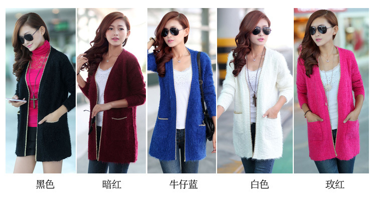 v領均碼韓版開衫寬松長袖中長款毛針織衫外套女裝2013秋季黑色