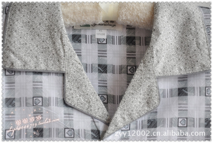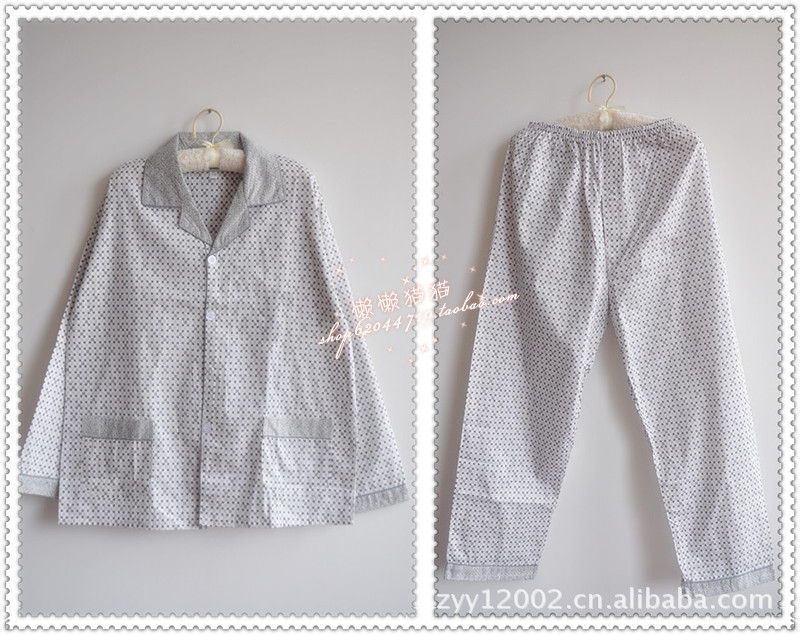 批發 春秋新款男士梭織棉灰色方格子款長袖睡衣套裝居家服 多色