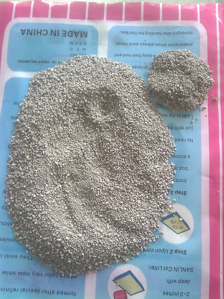 材質:結團貓砂也叫可凝結貓砂(Clumping Litter)。特性:此種貓砂遇水既凝結。當貓咪方便后,膨潤土吸收了尿液,會凝結成一個土塊,方便鏟除尿塊和糞便。