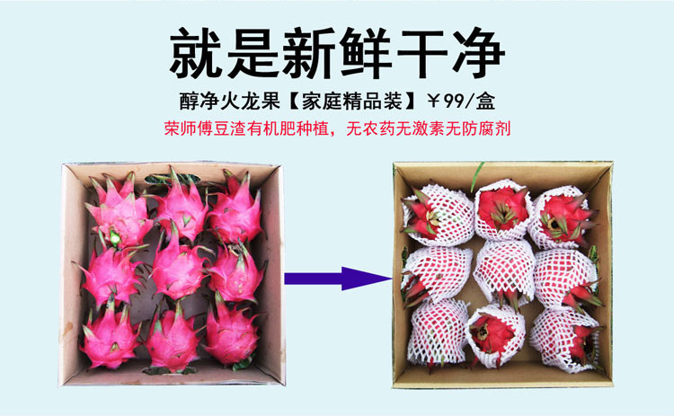 醇凈無公害綠色火果龍個個都是挑選精品,5斤/盒,分三個檔次的禮盒裝: