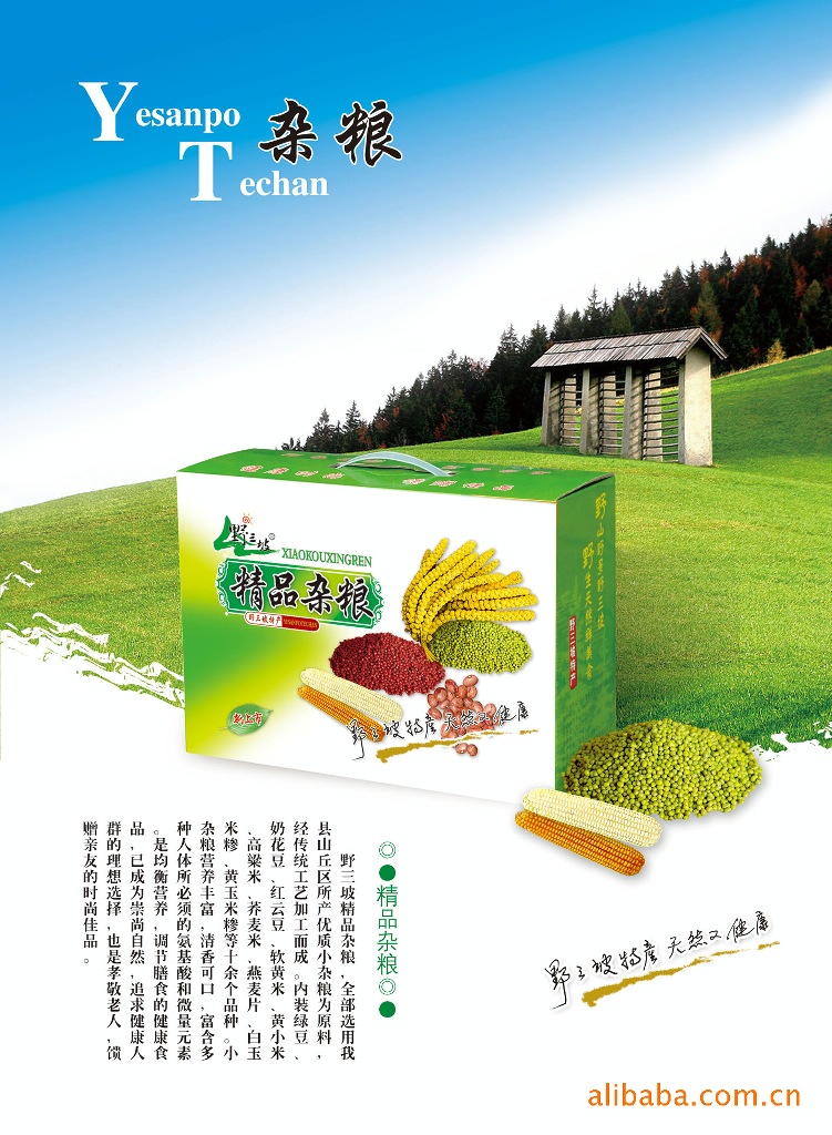 野三坡牌雜糧禮盒,精選河北省淶水縣野三坡AAAA即國家風景名勝區所產優質小雜糧為原料,經傳統工藝加工而成,有小米、白瑪雅玉米糝、大黃米、蕎麥米、燕麥片、綠豆、黃豆、蕓豆、小豆等,是養生保[jian]的食品