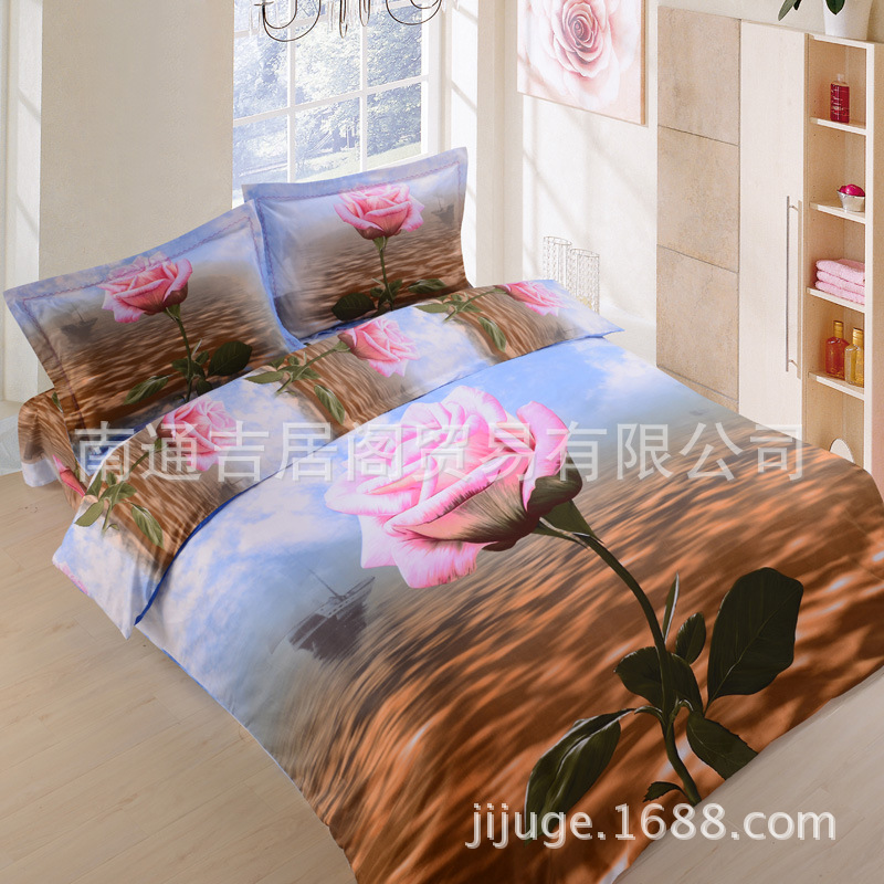 全棉活性印花四件套 純棉四件套 3D油畫四件套 植物系列之一