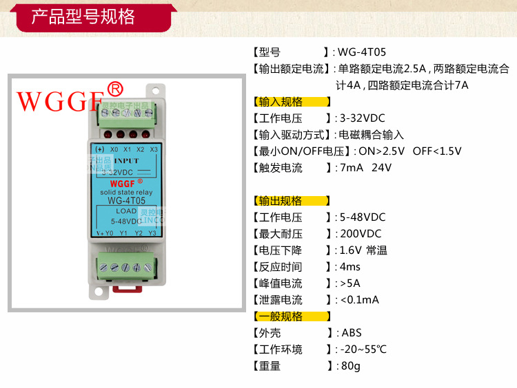 固態繼電器 PLC輸出導軌式固態繼電器 PLC輸出固態繼電器 WG-4T05