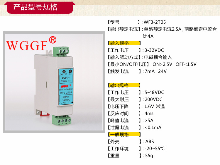 4.伍格固態繼電器重視每一個客人,每一個評價.如果您滿意請給我們五分哦~我們無盡感激.如果出了問題,或者您有任何的不滿,請及時與我們聯系.彼此多一份理解與信任,請相信我們可以為您做得更好,更貼心.您的寶貴的意見就是我們需要改進的地方,我們會虛心的接受您中肯的評價,謝謝您的支持!