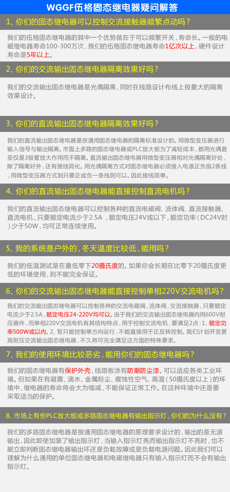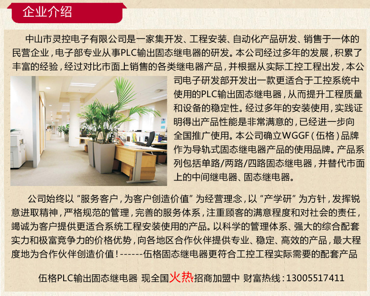 5.歡迎各工控自動化公司、工控達人、PLC工程師、機械設備企業、五金店老板等下單采購,伍格固態繼電器全國加盟中心熱誠為您服務,現誠招全國各地區代理及經銷商,加盟熱線