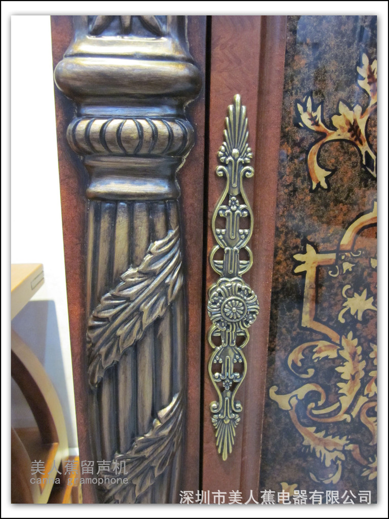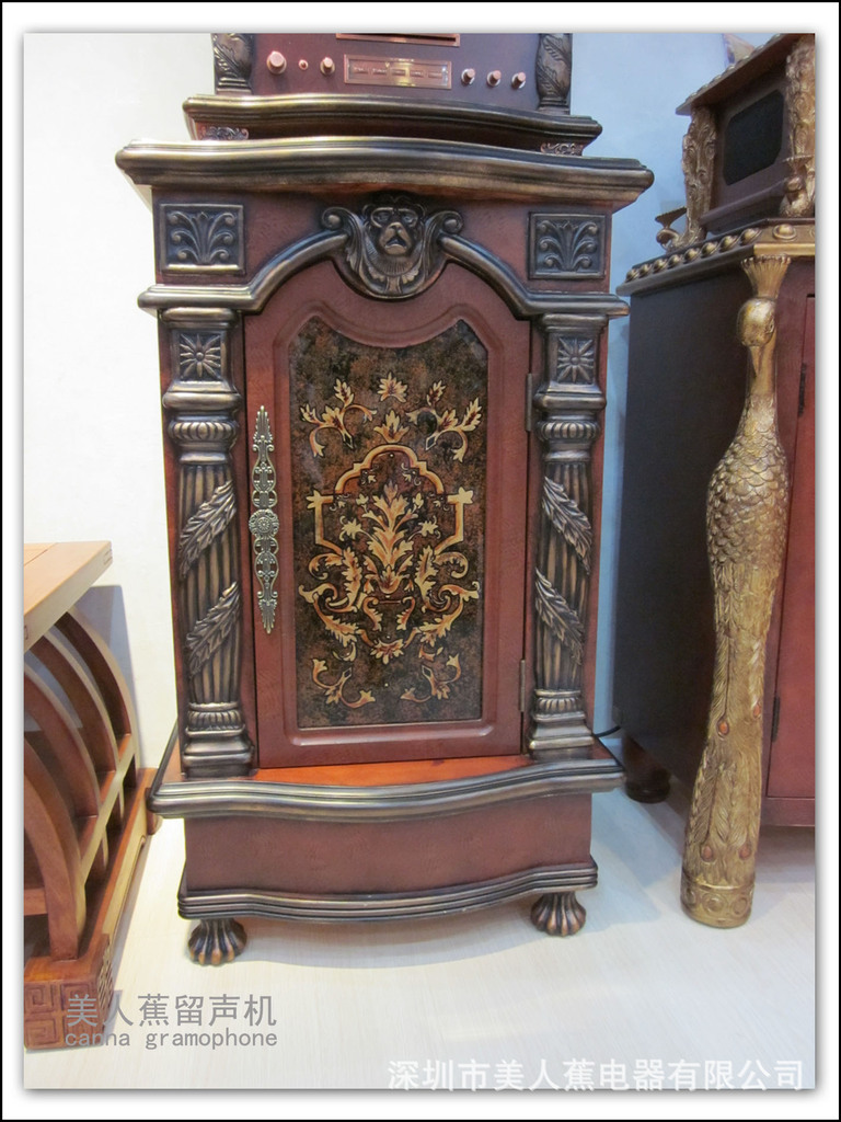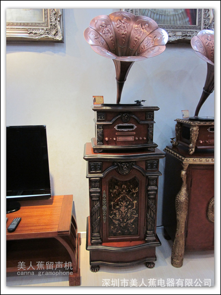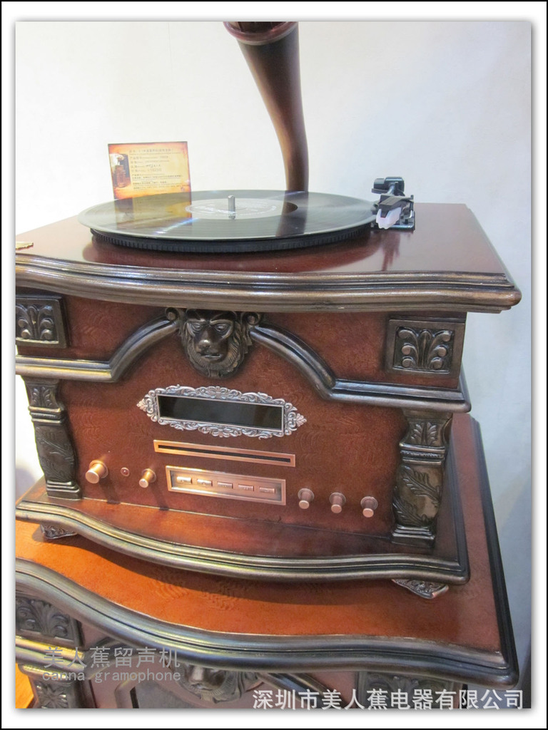 • 產品名稱留聲機 (仿古留聲機)主要功能:電唱機+DVD+5.1功放 數字收音機+外接音頻、視頻兼容諜片:DVD、VCD、SVCD、CD、MP3、MP4、JPEG、PICTVRE-CD等。多種音頻解碼:杜比AC-3、MPEG、PCM、HDCD等。多種視頻輸出:復合視頻、S端子、色差等。