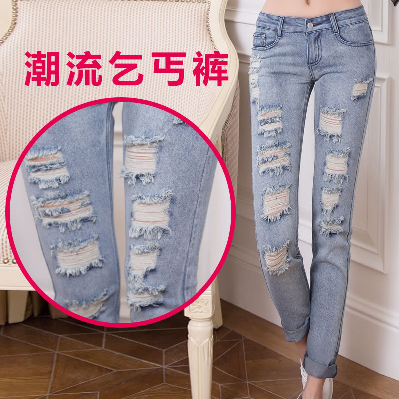 東大門秋裝新款女韓版官網磨破顯瘦小腳哈倫褲牛仔褲女式長褲¥45.00