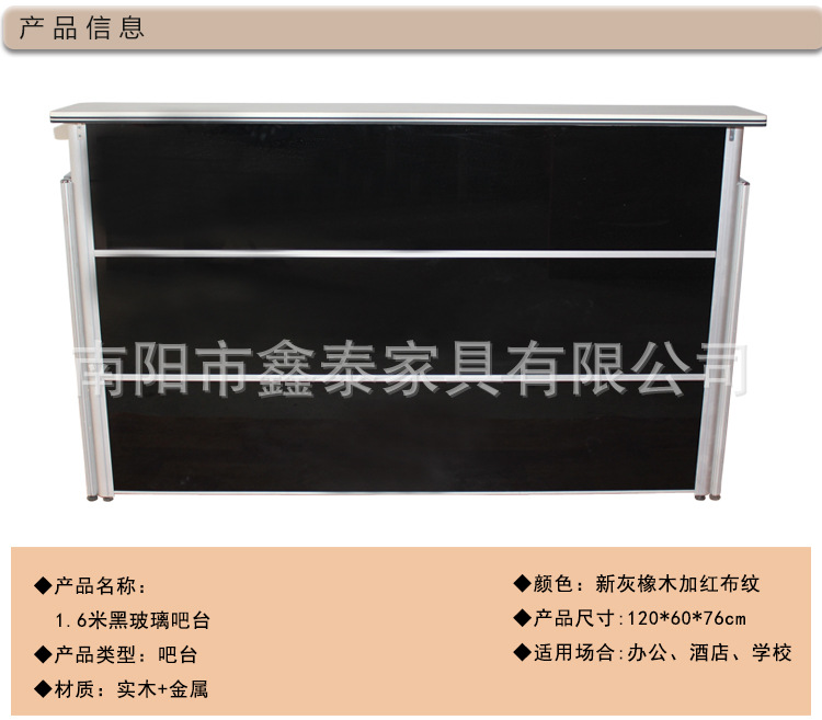 高品質吧臺 廠家專業供應 時尚簡約1.6 米黑玻璃吧臺