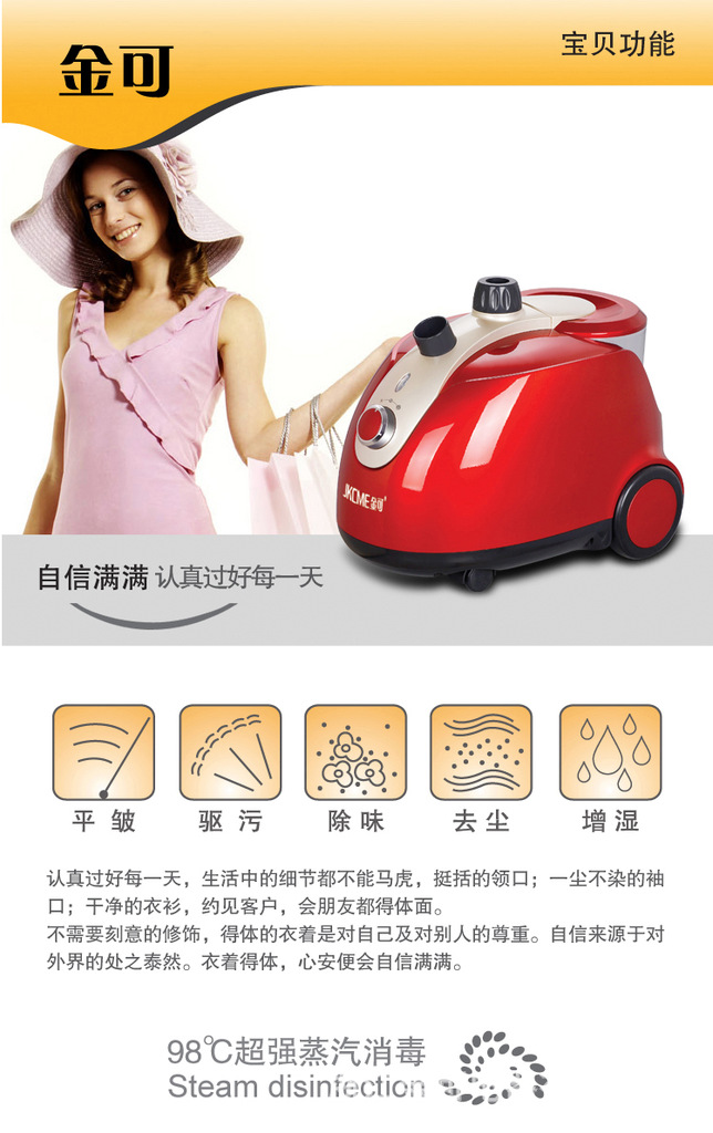 產品適用于任何質地的衣服、窗簾、毯子及毛絨玩具的熨燙和消毒除塵,由于掛燙機安裝方便、使用簡單、操作輕松,省略了我們平時熨衣的繁瑣步驟,特別適合于服裝專賣店、普通家庭、賓館和酒店使用。