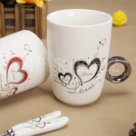 創意禮品陶瓷杯子 馬克杯 桃心情侶杯 戒指杯 廣告促銷 一件代發