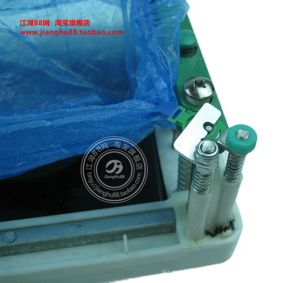 使用說明:將腳放在機身踏板中間位置,稍用力踩踏板至底部,鞋套就自動套上