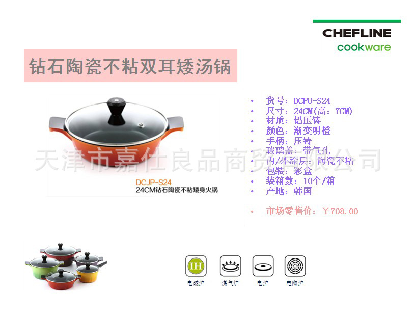 *商品名稱:廚福蘭 CHEFLINE 鉆石陶瓷不粘雙耳矮身火鍋 DCJP-S24