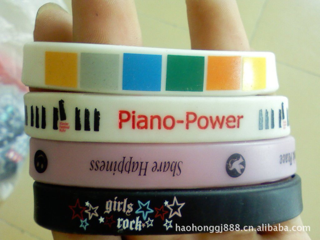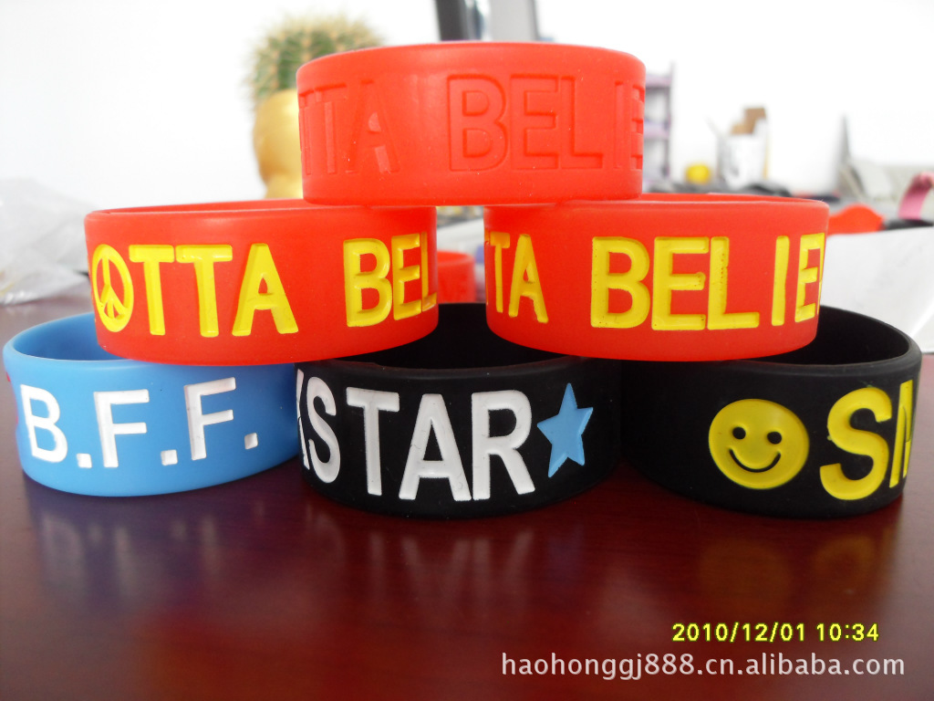 產品特點:手環的材質為矽膠材質,產品的規格大小均能設計生產,產品表面可以定制產品LOGO,環保無毒。且具有手感柔軟,彈性度好,色彩鮮艷、造型美觀等優點
