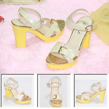 廠家直銷夏季新款女鞋涼鞋超高跟防水臺拼色時尚優雅女士粗跟熱賣