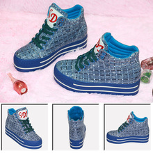 韓版潮手繪高幫帆布鞋內增高滑板鞋平跟單鞋布鞋包郵
