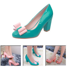 2014新款秋季女鞋時尚蝴蝶結單鞋韓版圓頭粗跟高跟單鞋廠家直銷