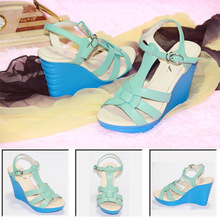 熱賣羅馬風格夏季新款女鞋涼鞋超高跟防水臺拼色時尚優雅女士粗跟