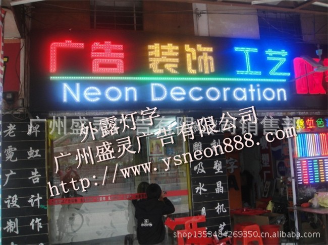 4、易維護:雖然說LED燈是很少會壞的,但是如果遇到線的接觸不良或者特殊情況壞了,需要去維修,這種LED外露字只需要高空吊人到廣告牌壞的位置將壞的燈從正面拉出換完即可
