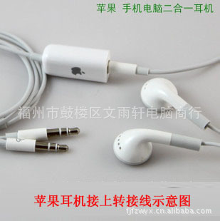 蘋果IPHONE/2in1耳機線/筆記本專用/IPHONE/3GS耳機/帶麥帶轉接線