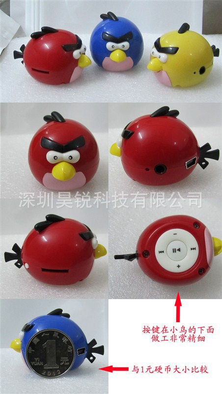 2012新款 憤怒的小鳥插卡MP3播放器 可愛mp3 迷你 卡通 禮品mp3