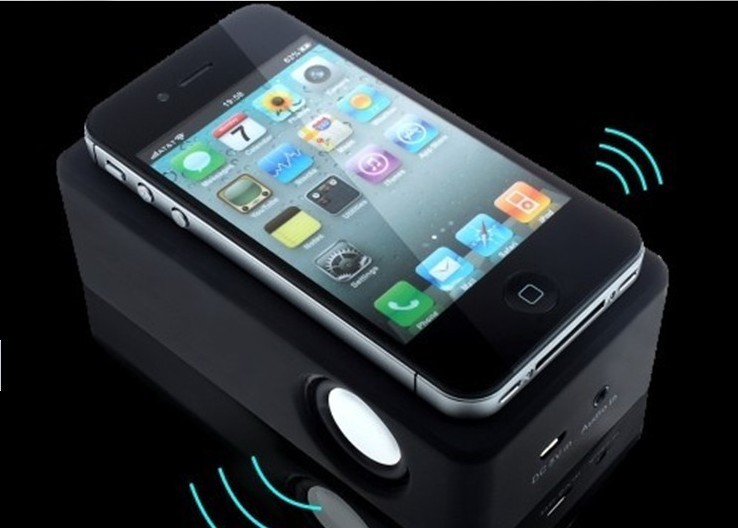1:魔術感應音箱采用全球互感專利技術,無需要藍牙,無需要接線,只需把手機,如MP3,MP4,MP5,智能帶外音手機如iphone系列手機放置在Best揚聲器上,即可魔法般地放大內置的揚聲器聲音。本產品兼容iphone 5、4S、iphone 4、iphone 3G、iphone 3GS、iPod, Touch 4和其它有外置揚聲器的手機。