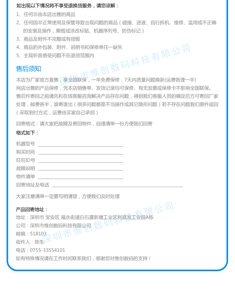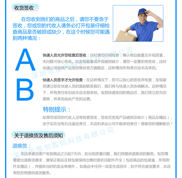 只有廠家直銷才能對質量及售后得到的保障,阿里巴巴和淘寶上渾水摸魚的商家太多,這些店鋪都不是品牌廠家直銷的產品,它們都是進貨來銷售,價格高、以次充好、更有的賣家為了進貨成本低,不惜銷售翻新機等等和吹噓自己的店鋪。作為一個品牌,如果連生產都不能自己控制,如何保證產品的質量?保證買家的利益?保證售后服務?有的商家連產品原理都搞不明白如何給客戶修,惟創誠信經營,所有產品為實物拍攝,不虛假宣傳。