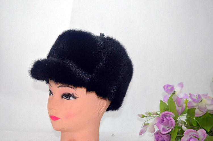 2014年廠家批發男士秋冬款水貂毛黑獵皮草帽子 百搭