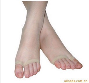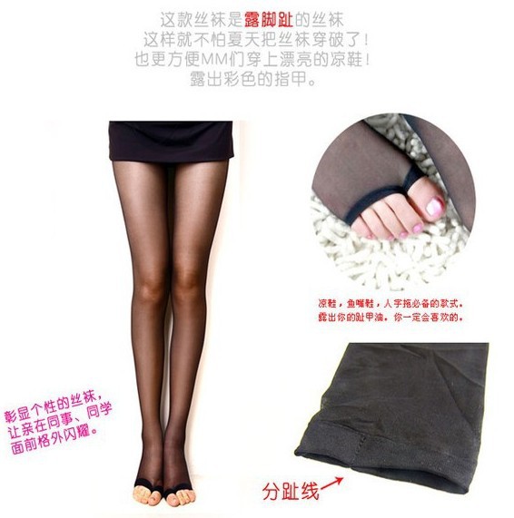 日常生活中,女性夏天穿裙子著涼鞋時,涂趾甲油穿絲襪就掩蓋了腳部的美,或者穿著涼鞋配傳統絲襪又顯得老土,而不穿絲襪又有失端莊、優雅及禮貌。 此款露趾襪既解決了以上的不便和著人字涼鞋不能穿絲襪的苦惱,又美觀、時尚,透氣性好,穿著干爽舒適。