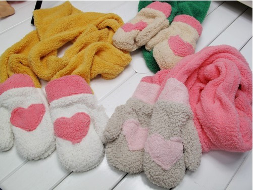【特點】:暖暖的超長可愛愛心手套圍巾一體的 佩戴舒適保暖 面料柔軟