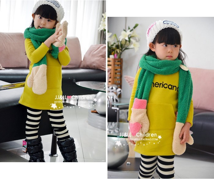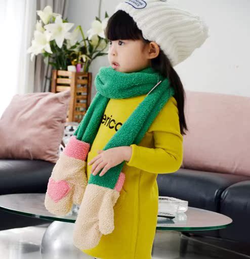 【時尚新品】超長韓版兒童 愛心手套圍巾 羊羔絨保暖圍巾批發