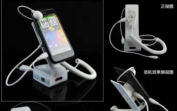 本品的默認的充電線是MicroUSB充電線,iphone系列不適合本防盜展示架的充電款。由于展示架工作時需要耗電,所以親們在使用時要注意及時給展示架充電。