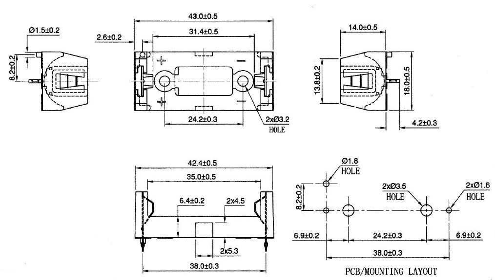 THM Holder for CR123A 2/3A Battery P/N BHC-1029A&BHC-1029B