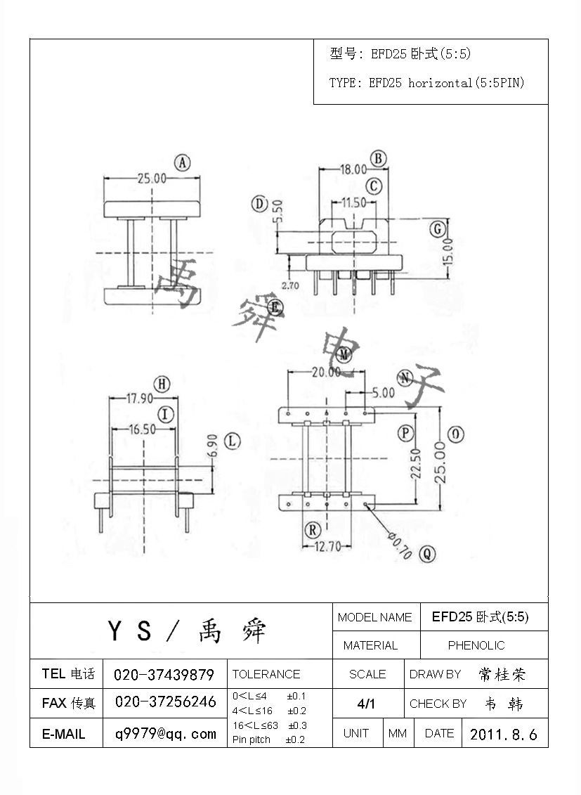 供應EFD25磁芯骨架