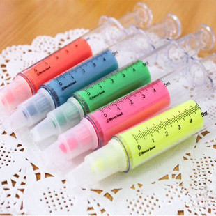 創意可愛針筒式熒光筆 彩筆 日韓文具批發