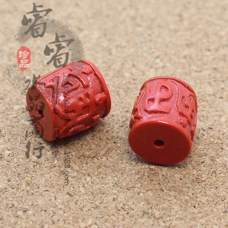 純正天然硃砂六字真言筒珠鼓珠桶珠散珠 DIY飾品配件批發